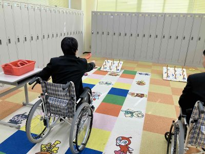 今回は車イスに乗って“輪投げ”・“ボッチャ”・“フリスビーストライク”をしました。